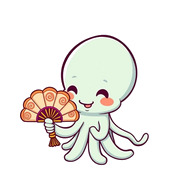 Brighten your space with this funny Kawaii squid poster! The tiny ornate fan adds a touch of elegant charm.